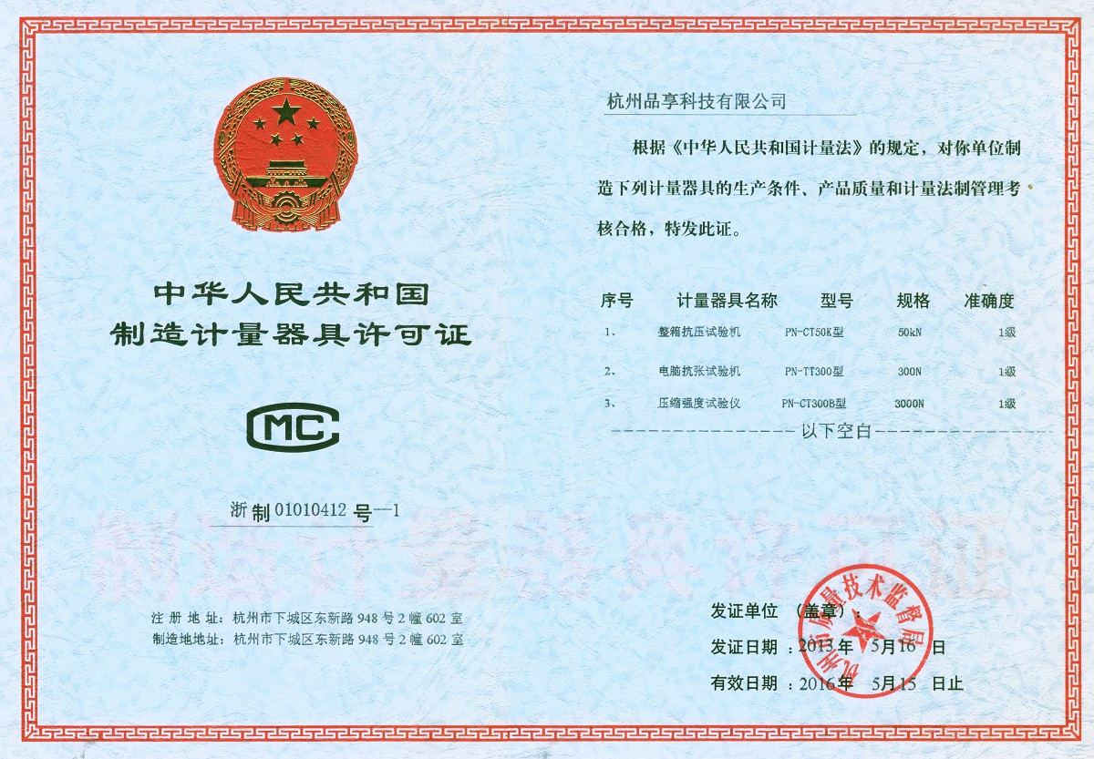 | 發(fā)證機(jī)構(gòu) | 杭州市質(zhì)量技術(shù)監(jiān)督局 | 發(fā)證時(shí)間 | 2013-05-16 |