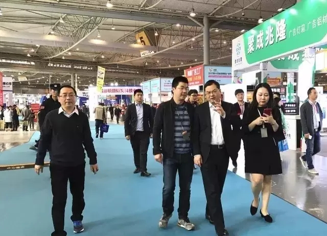 (展會現場,德納展覽集團總經理陳西強先生、成都市博覽局局長王天剛先生和四川德納展覽總經理劉愉女士現場參觀)