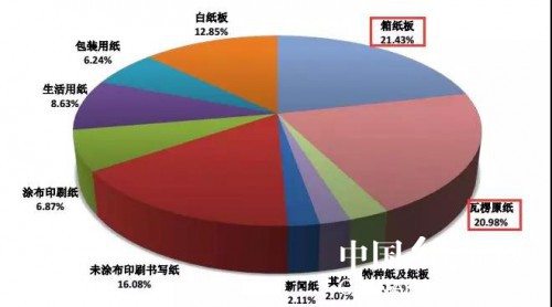 2、2017年紙及紙板各品種生產量占總產量的比例: