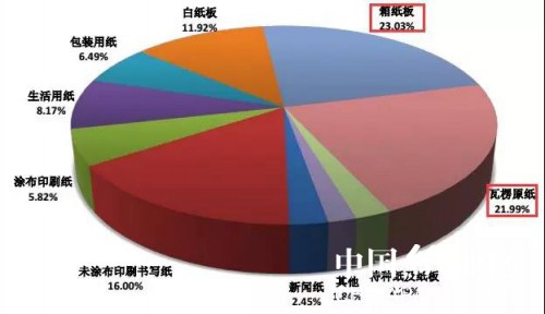 3、2017年紙及紙板各品種消費量占總消費量比例: