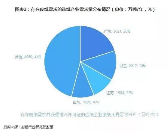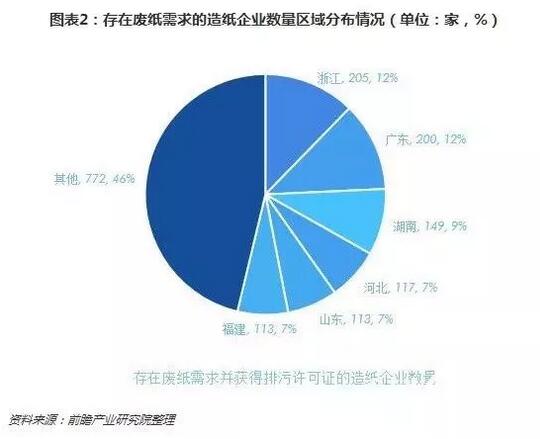 據(jù)相關(guān)機(jī)構(gòu)的統(tǒng)計(jì),截至2018年2月5日,共有3073家造紙企業(yè)獲得排污許可證,存在廢紙需求企業(yè)有1669家,占比54%。