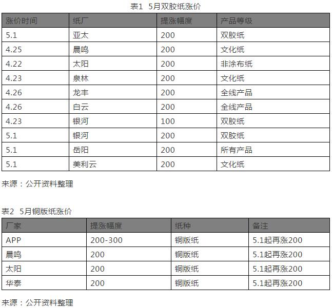 4月中下旬在廠家漲價函推動下需求回升,雖然某廠雙膠紙的復工,對供求產生階段性心理影響,但是實際沒有緩解市場的供應緊張。短期紙價會有個上升階段,第二季度末估計會形成新的波動趨勢。