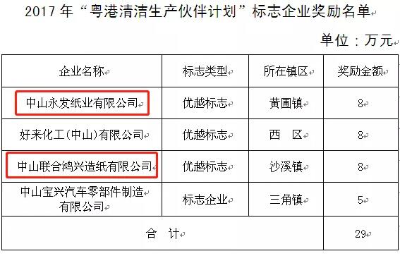 7月1日,廣東省中山市工業(yè)和信息化局公示了關(guān)于2019年打好污染防治攻堅戰(zhàn)專項資金(綠色發(fā)展用途)項目擬補貼企業(yè)名單,名單中包括中山永發(fā)紙業(yè)有限公司、中山聯(lián)合鴻興造紙有限公司兩家造紙企業(yè)。