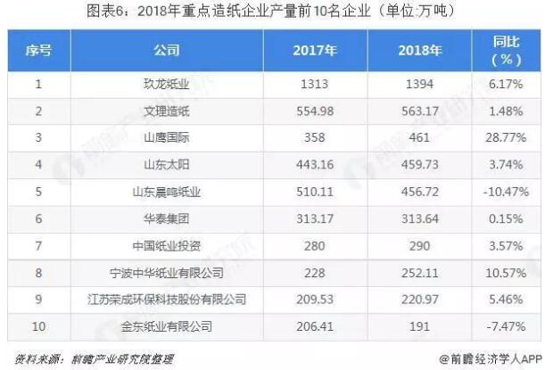 另外,從中國(guó)造紙協(xié)會(huì)公布的數(shù)據(jù)來看,中國(guó)重點(diǎn)造紙業(yè)企業(yè)中玖龍紙業(yè)產(chǎn)量最大,超過1300萬噸。