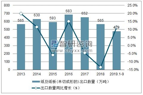 2019年1-9月中國紙及紙板出口量為479萬噸 同比增長11.4%