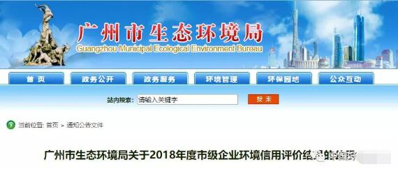 目前,環境信用評價結果在廣州市生態環境局官方網站進行公示,公示期為2019年11月15日至11月29日。公示期間,該局接受公眾來電、來信等形式反映問題,并將對所反映的問題進行調查、核實和處理。