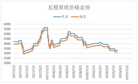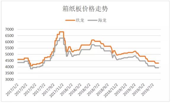 但2018年以來,包裝紙價格則開始下降,目前箱板紙價格已基本回落到4000元/噸左右,瓦楞原紙價格回落到3200元/噸左右。