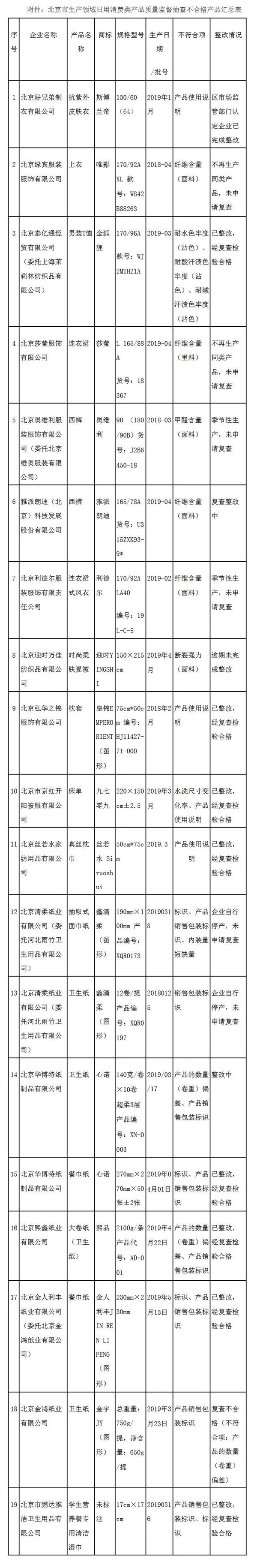 據北京市市場監督管理局官網4月17日通報,該局近期依法對本市生產領域服裝、玩具等9種日用消費類產品開展了質量監督抽查,依據相應產品質量監督抽查方案和相關標準,檢出1批次兒童服裝、6批次成人紡織服裝、4批次床上用品和8批次紙及紙制品不合格。