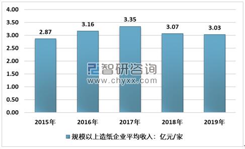 2015-2019年中國規模以上造紙企業平均收入走勢圖