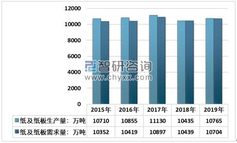 2015-2019年中國紙及紙板生產和消費情況