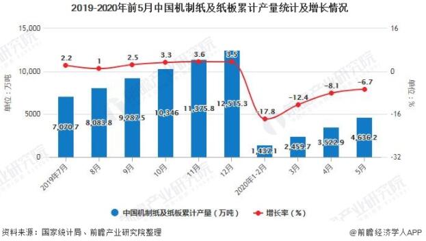 2020年1-5月中國機制紙及紙板累計產量超4600萬噸