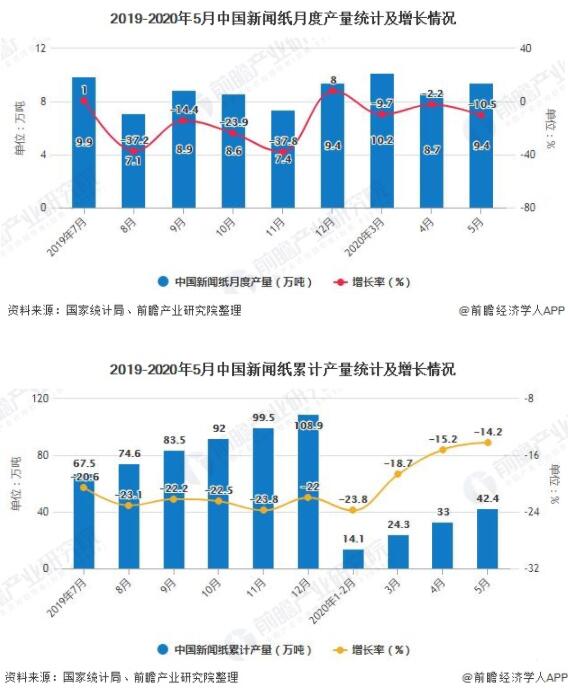 2020年1-5月中國新聞紙累計產量突破40萬噸