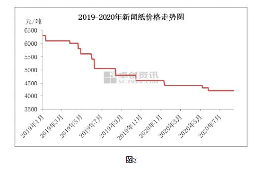 價格方面,2019年至今,新聞紙價格呈現持續下行走勢,跌幅高達2000元/噸左右,據卓創監測數據顯示,目前新聞紙全國均價在4200元/噸。卓創分析,一方面國內下游報業發展持續萎縮,對于新聞紙的需求持續下滑,國內生產代表性企業僅剩華泰、廣紙及山鷹紙業,其余零散小廠多以小單為主。另一方面,進口新聞紙價格低位,對于國產新聞紙的價格也起到了一定程度的沖擊。