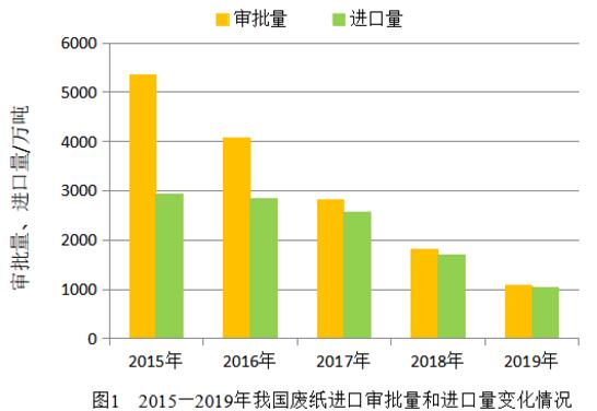 由表5可見,根據《關于禁止洋垃圾入境推進固體廢物進口管理制度改革實施方案》公布的全面禁止固體廢物的時間表,在其要求的力爭在2020年年底前基本實現固體廢物零進口的總背景下,2019年我國廢紙進口量繼續大幅下降,這也是國家近幾年加大廢紙進口審批管控力度的結果(見圖1)。