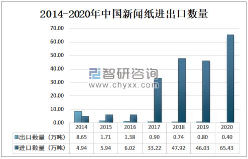 2014-2020年中國新聞紙進(jìn)出口數(shù)量