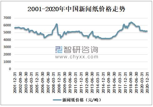 中國新聞紙價(jià)格水平在4000元/噸-6500元/噸之間波動,自2018年年底以來,中國新聞紙價(jià)格走勢不斷下降,截止2020年12月31日,中國新聞紙價(jià)格為5210元/噸。