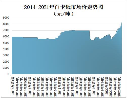 2014-2021年白卡紙市場價走勢圖(元/噸)