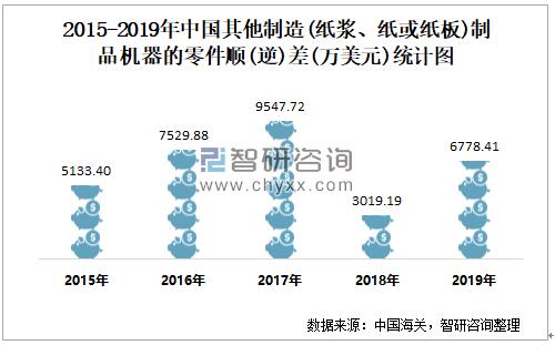 根據中國海關數據顯示:2019年1-12月中國其他制造(紙漿、紙或紙板)制品機器的零件進口數量為563.89噸,進口金額為2273.51萬美元;2019年1-12月其他制造(紙漿、紙或紙板)制品機器的零件出口數量為9820.33噸,出口金額為9051.91萬美元。