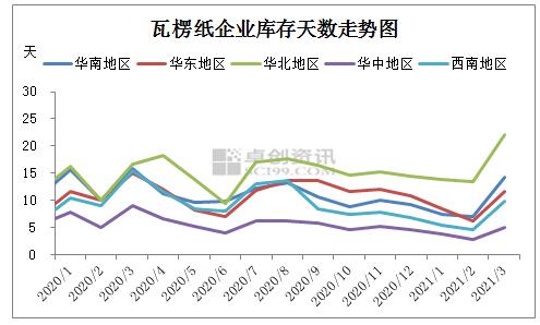 春節過后,市場對經濟恢復預期更加樂觀,加之通脹預期增強,市場炒作氛圍濃厚,原紙價格又出現一波快速拉漲。但是進入3月份以來,國內瓦楞原紙需求明顯放緩。一方面是,此前在價格上漲期,下游包裝廠加快備貨節奏。而節后價格的快速拉漲,加大了包裝廠對高價貨源的抵觸;另一方面,包裝廠訂單減弱,繼續備庫意愿降低,主要以去庫存為主。