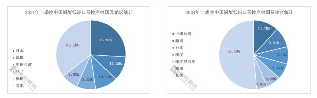 2021年二季度銅版紙進(jìn)口量、出口量按貿(mào)易伙伴統(tǒng)計(jì)