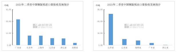 2021年二季度銅版紙進(jìn)口量、出口量按收發(fā)地統(tǒng)計(jì)