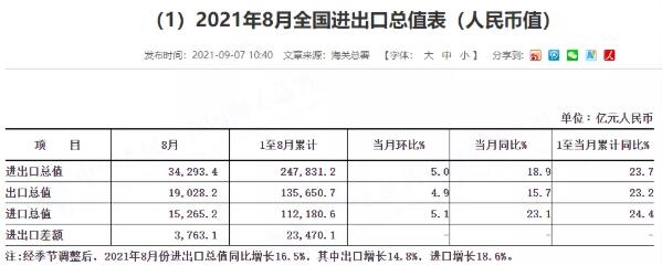 從出口數(shù)據(jù)來看,前八月出口暴增23%,表現(xiàn)十分亮眼,顯示出中國作為世界工廠的強(qiáng)大韌性。