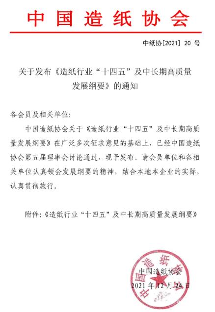 中國造紙協會《造紙行業“十四五”及中長期高質量發展綱要》