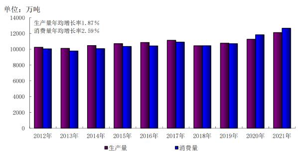 (2012年-2021年紙及紙板生產(chǎn)和消費(fèi)情況)