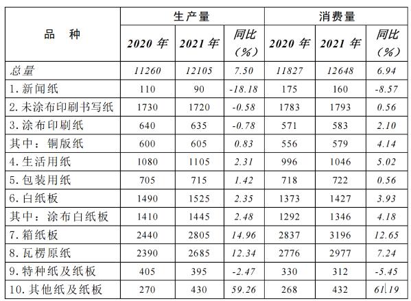 (2021年紙及紙板生產(chǎn)和消費(fèi)情況)