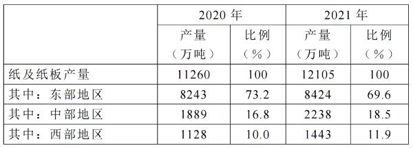 (2021年紙及紙板生產(chǎn)量區(qū)域布局變化)