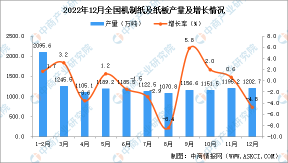 2022年12月全國機制紙及紙板增長情況: