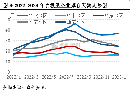 2023年1月,白板紙市場穩(wěn)定運行為主,規(guī)模紙廠存拉漲意向,計劃于2月20日上調(diào)50元/噸。但下游需求恢復不及預期,經(jīng)銷商備貨意向欠佳,市場成交有限,紙價上行乏力。預計2-3月份白板紙市場價格或小幅震蕩上揚,上漲空間有限。