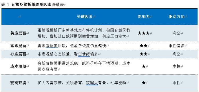 3月瓦楞紙、箱板紙仍存有下行可能。