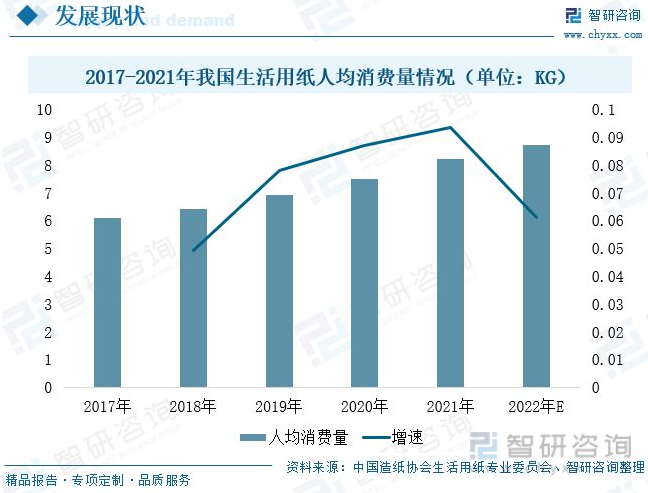 生活用紙是消費(fèi)量巨大的日用消費(fèi)品,隨著我國(guó)經(jīng)濟(jì)發(fā)展水平和人民生活水平日益提高,全國(guó)各地區(qū)對(duì)生活用紙的消費(fèi)量都呈穩(wěn)定增長(zhǎng)態(tài)勢(shì)。數(shù)據(jù)顯示:2021年我國(guó)生活用紙消費(fèi)量達(dá)到1162萬(wàn)噸,同比增長(zhǎng)10.77%,國(guó)內(nèi)生活用紙市場(chǎng)規(guī)模約1406.6億元,是全球最大的生活用紙消費(fèi)國(guó)。隨著居民生活水平不斷提升以及消費(fèi)者健康衛(wèi)生意識(shí)不斷增強(qiáng),2022年生活用紙消費(fèi)量將延續(xù)增長(zhǎng)態(tài)勢(shì),達(dá)到1236萬(wàn)噸,這將進(jìn)一步拉動(dòng)造紙?jiān)O(shè)備需求上漲。同時(shí),隨著人們對(duì)生活用紙質(zhì)量要求越來(lái)越高,使得造紙行業(yè)對(duì)造紙?jiān)O(shè)備技術(shù)要求逐步提升,也將進(jìn)一步推動(dòng)造紙?jiān)O(shè)備升級(jí)轉(zhuǎn)型,行業(yè)發(fā)展?jié)摿^大。