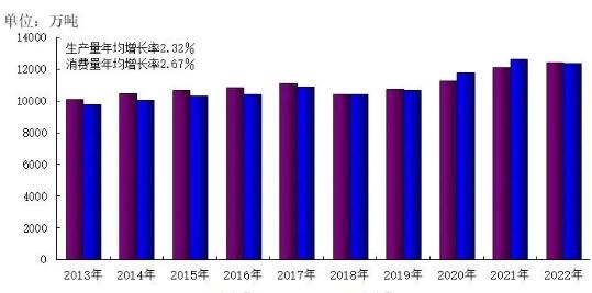(2013年~2022年紙及紙板生產(chǎn)和消費(fèi)情況)