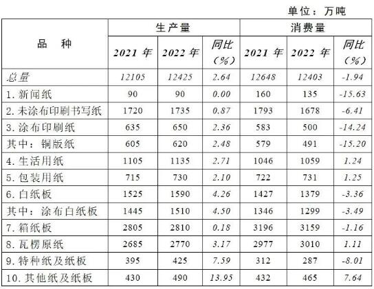( 2022年紙及紙板生產(chǎn)和消費(fèi)情況)