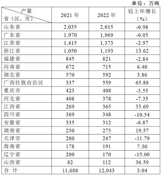 (2022年紙及紙板產(chǎn)量100萬(wàn)噸以上的省(區(qū)、市))