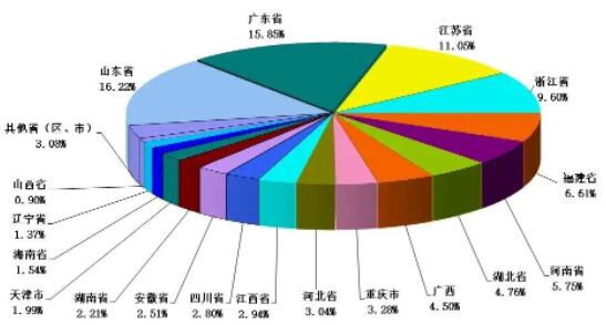 2022年,山東省、廣東省、江蘇省、浙江省、福建省、河南省、湖北省、廣西壯族自治區(qū)、重慶市、河北省、江西省、四川省、安徽省、湖南省、天津市、海南省、遼寧省和山西省18個(gè)省(區(qū)、市)紙及紙板產(chǎn)量超過(guò)100萬(wàn)噸,產(chǎn)量合計(jì)12043萬(wàn)噸,占全國(guó)紙及紙板總產(chǎn)量的96.92%。