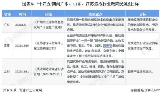 " 十四五 " 期間,廣東、江蘇、山東分別就節能技術、綠色制造、產業結構調整等方面的改革提出造紙產業發展規劃,具體如下表所示: