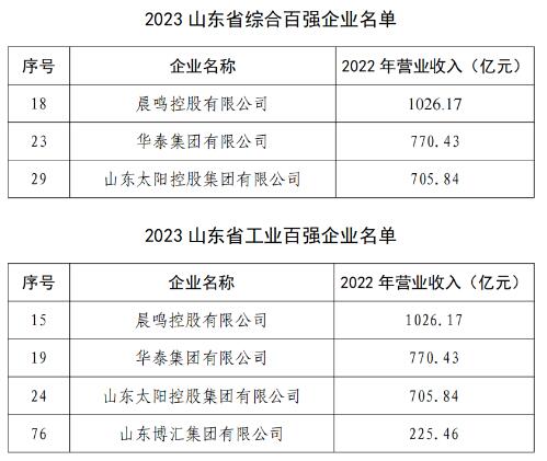 2023山東省百?gòu)?qiáng)企業(yè)名單公示 晨鳴、華泰、太陽(yáng)、博匯榜上有名