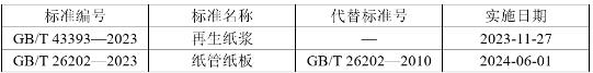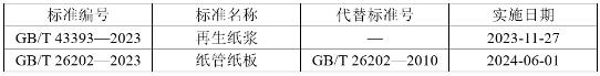 2023年11月27日,國家市場監(jiān)督管理總局(國家標(biāo)準(zhǔn)化管理委員會)發(fā)布2023年第13號公告,批準(zhǔn)發(fā)布《液壓缸試驗方法》等468項推薦性國家標(biāo)準(zhǔn),其中包括《再生紙漿》《紙管紙板》兩項造紙領(lǐng)域國家標(biāo)準(zhǔn),具體信息如下。