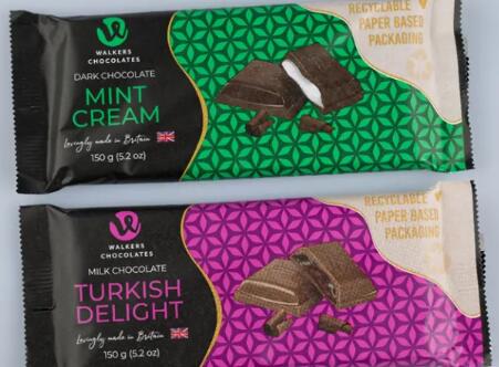 Walkers巧克力正在為其土耳其軟糖和薄荷奶油巧克力棒換上全新的包裝——EvoPak RCM。這種包裝完全由紙制成,而且可以100%回收。從本月開始,消費(fèi)者就可以在部分Asda和Premier商店買到采用新包裝的Walkers巧克力了。