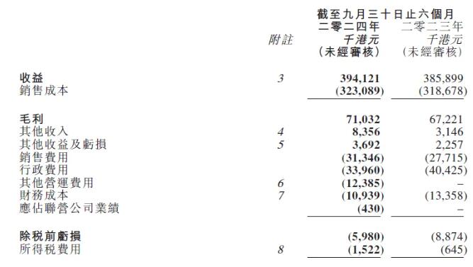 2021/2022財年: 營收達到11.77億港元,但凈虧損高達3898萬元。2022/2023財年: 營收大幅縮水至7.87億港元,凈虧損進一步擴大至6723萬元。2023/2024財年: 營收繼續小幅下降至7.65億港元,凈利潤收窄至1583萬元。2024/2025財年上半年: 虧損達到750萬港元的情況下,預計全年利潤難改頹勢。