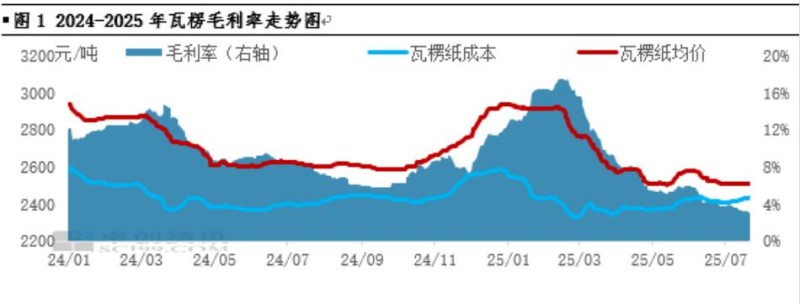 從毛利率數(shù)據(jù)來(lái)看,截至7月29日,瓦楞紙毛利率環(huán)比下調(diào)1.33個(gè)百分點(diǎn),較上期跌幅擴(kuò)大0.43個(gè)百分點(diǎn)。這一變化背后,是成本與價(jià)格的雙重作用。