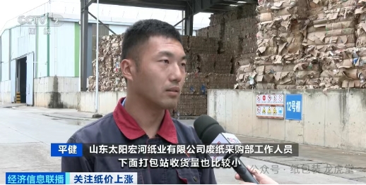山東太陽宏河紙業(yè)有限公司廢紙采購部工作人員 平?。航谟昙?,打包站收貨量也比較小,質(zhì)量上也不太穩(wěn)定,大部分紙廠收貨量都處在低位,大部分是勉強夠日需。