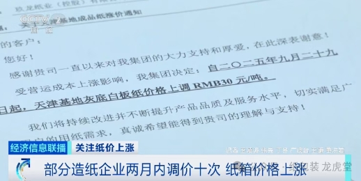 近日,多家包裝紙企業(yè)發(fā)布了新一輪調(diào)價函,據(jù)不完全統(tǒng)計,這已經(jīng)是8月以來的第10次漲價。