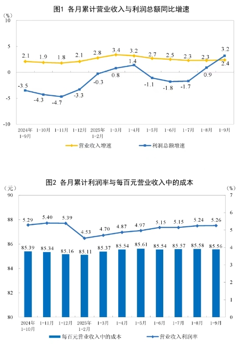 國(guó)家統(tǒng)計(jì)局工業(yè)司首席統(tǒng)計(jì)師于衛(wèi)寧解讀2025年1—9月份工業(yè)企業(yè)利潤(rùn)數(shù)據(jù)表示,1—9月份,各地區(qū)各部門認(rèn)真落實(shí)更加積極有為宏觀政策,培育壯大新經(jīng)濟(jì)增長(zhǎng)點(diǎn),高技術(shù)制造業(yè)、裝備制造業(yè)等新質(zhì)生產(chǎn)力較快增長(zhǎng),疊加低基數(shù)效應(yīng)影響,規(guī)模以上工業(yè)企業(yè)利潤(rùn)增速繼續(xù)回升。具體表現(xiàn)為:工業(yè)企業(yè)利潤(rùn)加快恢復(fù);工業(yè)企業(yè)營(yíng)收增長(zhǎng)加快;過半行業(yè)利潤(rùn)增長(zhǎng),六成行業(yè)增速回升;高技術(shù)制造業(yè)帶動(dòng)作用明顯;裝備制造業(yè)支撐有力,部分行業(yè)增長(zhǎng)較快;不同規(guī)模類型企業(yè)利潤(rùn)均有改善,私營(yíng)和外資企業(yè)利潤(rùn)明顯加快;營(yíng)收利潤(rùn)率回升。