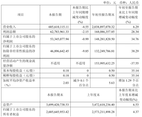 公司實現營業總收入16.09億元,同比下降3.19%;歸母凈利潤1.71億元,同比下降31.30%。