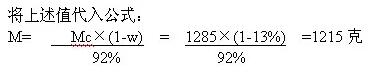 最后將測(cè)得的Mc值和W值代入公式,便可推算出溫濕平衡后的標(biāo)準(zhǔn)值,用M表示。