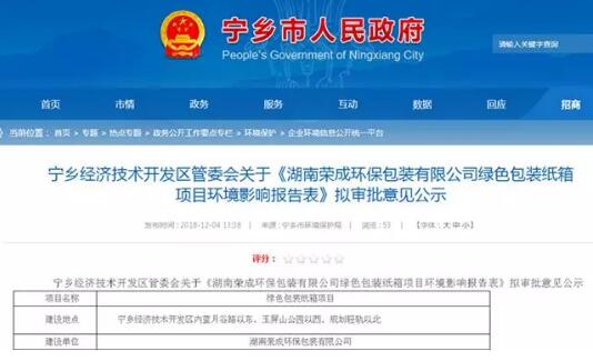 近期,湖南省寧鄉(xiāng)經(jīng)濟(jì)技術(shù)開發(fā)區(qū)管委會(huì)公示了關(guān)于《湖南榮成環(huán)保包裝有限公司綠色包裝紙箱項(xiàng)目環(huán)境影響報(bào)告表》擬審批意見。